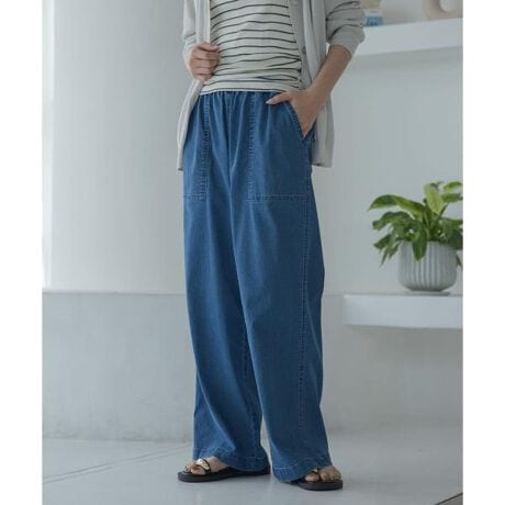 肌に触れるとひんやり冷たい接触冷感デニムを使用したパンツ。
