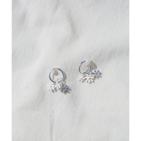 耳元でフラワーチャームがシャラシャラと揺れる、愛らしいデザインのイヤリング。