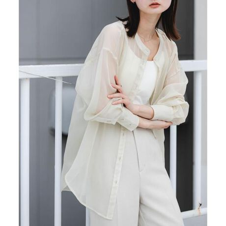 日常の装いに、涼やかな光と透明感を運んでくれるシアーバンドカラーシャツ。繊細な光沢を放つ生地が、カジュアルな着こなしをクラスアップさせ、モダンな佇まいへと導きます。前を閉じてプルオーバーのように着こなすのはもちろん、ノースリーブの上からさらりと羽織るスタイルもおすすめ。日除けや冷房対策としても重宝する軽快な着心地は、アクティブに過ごしたい夏のワードローブに欠かせない、完成度の高い特別な一品です。