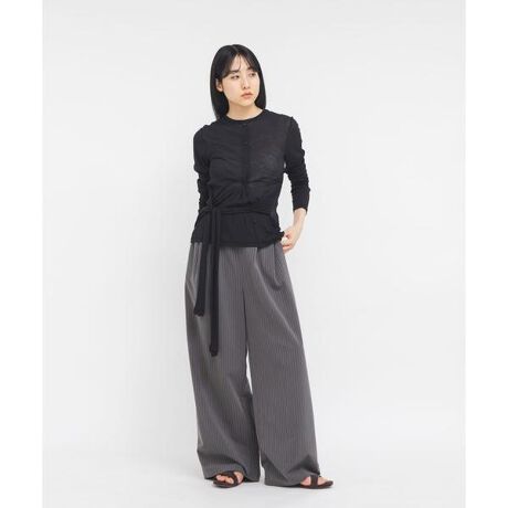ウエストがゴム仕様になった、リラクシーに穿けるイージーパンツ。ワイドストレートなシルエットで、足のラインを拾わずすっきりとした印象にしてくれます。サイドにさりげなくパイピングを挟み込んだデザインもポイントです。カジュアルからきれいめまで幅広く活躍します。