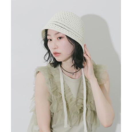 今季らしいクロシェ編みで仕上げた、表情豊かなバケットハット。