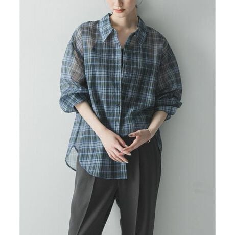 立体的なフォルムと透け感を演出、シアーチェックオーバーシャツ。