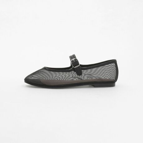 シアー素材でお作りしたメリージェーン型のフラットシューズ。