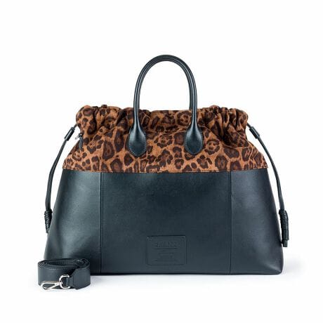 シンプルなフォルムに、バッグ上部へさりげなくあしらったレオパード柄がアクセントとなり、コーディネートに程よい遊び心をプラス。