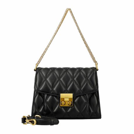 金色の金具とキルティングデザインのアクセントが高級感を演出する2wayレザーハンドバッグ。ポケットが3層に分かれているので綺麗の収納できます。チェーンのハンドルの他に付属のショルダーベルトが付いており、気分を変えてお持ちいただけます。