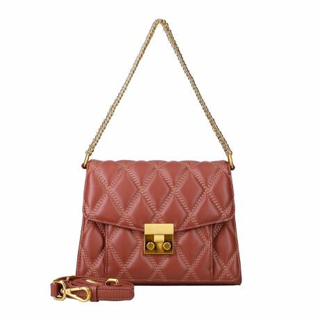 金色の金具とキルティングデザインのアクセントが高級感を演出する2wayレザーハンドバッグ。ポケットが3層に分かれているので綺麗の収納できます。チェーンのハンドルの他に付属のショルダーベルトが付いており、気分を変えてお持ちいただけます。