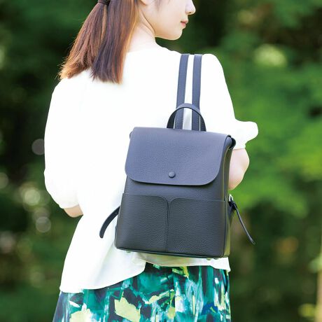 マットな質感のシュリンクレザーを使用した、金具が目立たないデザインです。