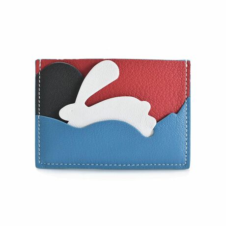 かわいらしいウサギが見事に切り出された牛革カードケース。
