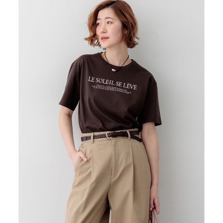 フランス語で「日の出」を意味する「LE SOLEIL SE LEVE」を上段に、下段には今シーズンのテーマである「FOCUS」をイメージして街が朝日に包まれていく描写をあしらったプリントTシャツです。上品で繊細なフォントを使用しているため、大人っぽく洗練された印象で着こなせます。脇に入れたスリットがさりげないアクセントになり、ボトムスにインしてもアウトしても様になるデザインです。デニムと合わせたカジュアルなスタイリングはもちろん、ジャケットのインナーとして覗かせたり、きれいめなボトムスと合わせて抜け感を演出する「外しアイテム」としてもおすすめの一枚です。カラーは、清潔感のあるベーシックなホワイト(#001)、さわやかで軽やかなブルー(#070)、落ち着いた雰囲気のブラウン(#030)、深みのあるシックなダークブラウン(#035)の4色展開です。