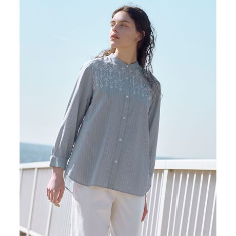 繊細な刺繍が顔周りを彩る、バンドカラーブラウス