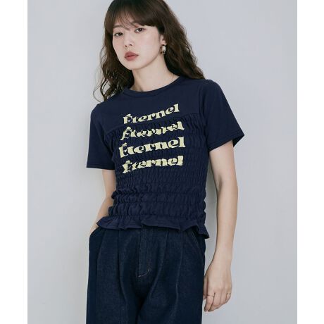 シャーリングとロゴデザインで甘さとカジュアルが融合したロゴT。