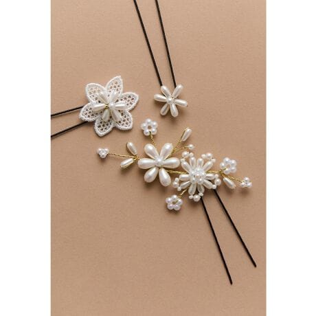 niana ニアナ パールとレースのフラワーモチーフを組み合わせたヘアピン3本セット。