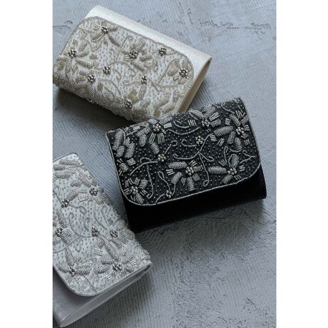 niana ニアナ フラップ部分に施した立体感のあるビーズ刺繍が目を惹くクラッチバッグ。