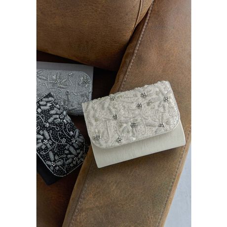 niana ニアナ フラップ部分に施した立体感のあるビーズ刺繍が目を惹くクラッチバッグ。