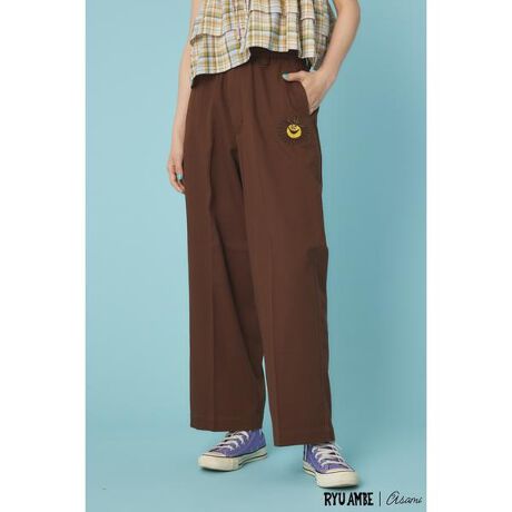 ■ポイントキャラクターデザイナーRyu Ambeと谷口麻実コラボアイテム。アメリカンカジュアルをこよなく愛する谷口麻実が、RYUさんに書き起こしてもらったサンパンチョを使用し、特別なパンツをリリース。■ディティールシルエットはワイドストレート。ウエストはゴム入りで、前ファスナーが開きます。前開き釦はオリジナルタックです。前パンツに、キャラクター刺繍入り。シンプルで着回ししやすいアイテムです。■生地コットンツイル素材を使用。製品洗いありです。■透け感:なし■光沢感:なし■伸縮性:なし■裏 地:なし[注意事項]※画像の商品はサンプルです。実際の商品と仕様、加工が若干異なる場合があります。※画像の商品は光の照射や角度、お使いのモニター環境により、実物と色味が異なる場合がございます。※着用、お取り扱いの際は、アテンションタグをご確認ください。