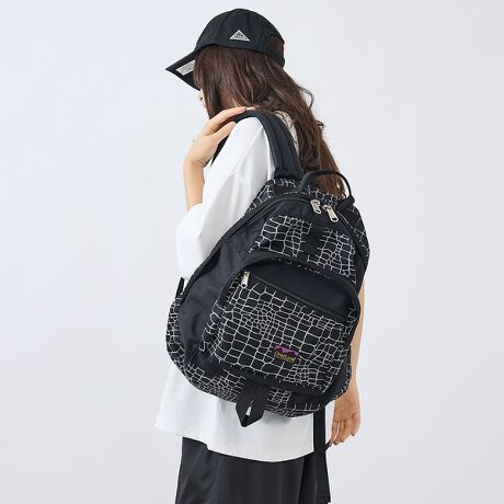 スパイダーウエブ柄のリフレクトプリントが特徴的なバックパックです。