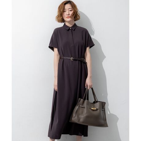 フロントはすっきりとしたシンプルなストレートシルエットでありながら、サイドに施された深めのタックディテールが目を惹くワンピースです。動くたびにサイドのタックが揺れ、一枚でさらりと着るだけで華やかで洗練されたスタイリングが決まります。きちんと感のある襟付きデザインのため、通勤などのオンタイムから、休日のお出かけやちょっとしたお食事会まで幅広いシーンで活躍します。カーディガンやジャケットを羽織ってもすっきりとまとまり、合わせるバッグやシューズ次第で様々な表情をお楽しみいただけます。カラーは、肌なじみが良くやわらかな印象のベージュ系(#033)、落ち着いた大人の雰囲気を醸し出すダークブラウン系(#035)、知的で上品なネイビー系(#075)の3色展開です。