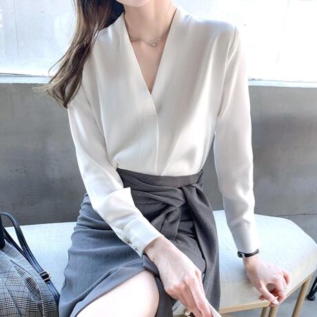 マルイウェブチャネル   /   トップス   /   ブラウス   /   すっきりとしたVネックで上品に着こなせる、きれいめ長袖ブラウス シャツブラウス きれいめ フォーマル