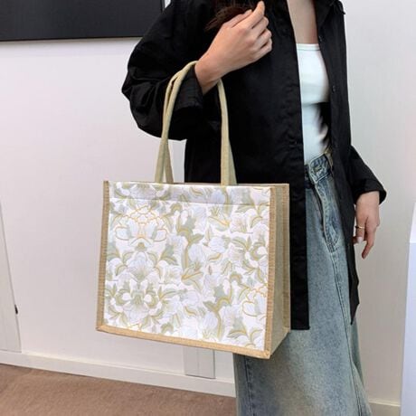 コーデに華やかさを添える、上品ボタニカル柄トートバッグ 花柄 大容量 軽量 A4対応 肩掛け
