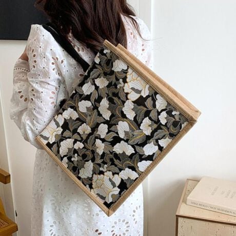 コーデに華やかさを添える、上品ボタニカル柄トートバッグ 花柄 大容量 軽量 A4対応 肩掛け