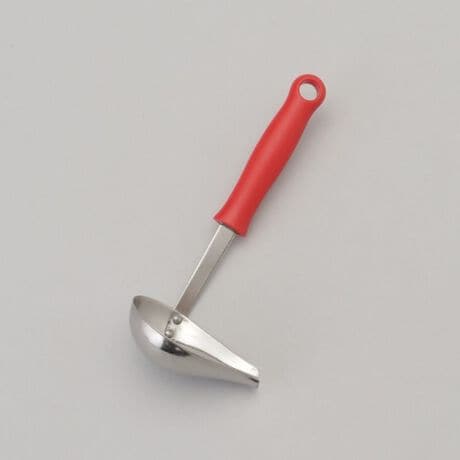 たこ焼き器の穴にめがけて注げる形状のレードルです。