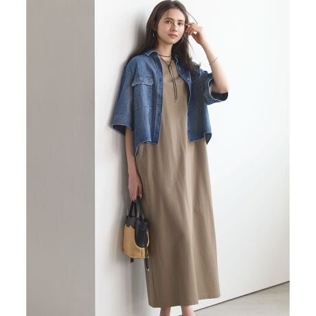 後ろのネックラインに施されたレースアップディテールが目を惹く、クルーネックのTシャツワンピースです。程よく体から離れるすっきりとしたIラインシルエットで、リラックス感がありながらもラフになりすぎず、気軽に取り入れていただけます。印象的なバックシャンのポイントが効いており、足さばきを良くする裾のバックスリットも備えているため、暑い時期にもこれ1枚でこなれ感のあるスタイリングが完成します。カラーは、鮮やかで夏らしいタンジェリン(#020)、柔らかなニュアンスのモカ(#030)、シックで落ち着いたスチール(#004)の3色展開です。