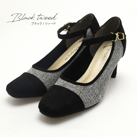 ストラップ パンプス シンプル スクエアトゥ カジュアル アンクルベルト 太ヒール チャンキーヒール