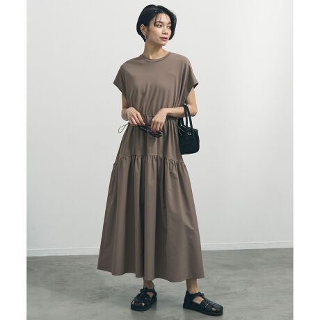 異素材コンビで魅せる!機能性も備えた大人カジュアルなティアードワンピ