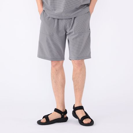 ウエストは総ゴムのシャーリング仕様で、リラクシーなはき心地。ポケットの袋布にはメッシュ素材を採用、水はけの良さもポイント。タウンユースはもちろん、水辺のシーンにも対応する水陸両用アイテムです。
