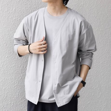 程よいリラックスシルエットで、一枚着としてはもちろん、カーディガン等のインナーとしても活躍します。