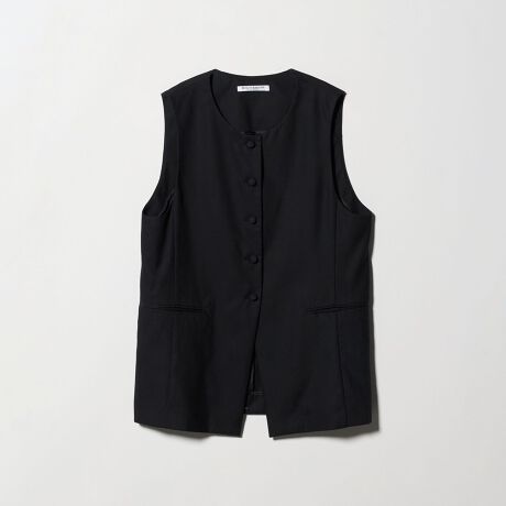くるみボタンがアクセントになったクルーネックベスト。