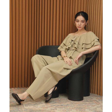 【2026SS】ティアードフリルオフショルダーワイドパンツオールインワン【洗える】