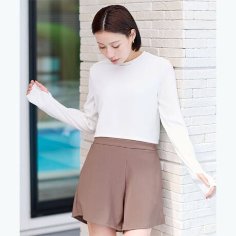 さらにショートパンツ付きで、気になるヒップや太ももまわりをさりげなくカバー。