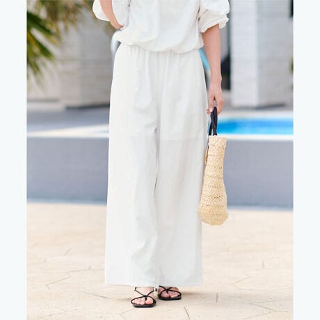 ウエストはゴム仕様で締め付け感がなく、デイリーに取り入れやすい一本です。
