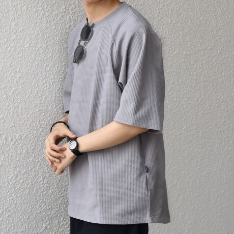 さらっとした着心地のワッフル素材を使用した、シンプルなTシャツ