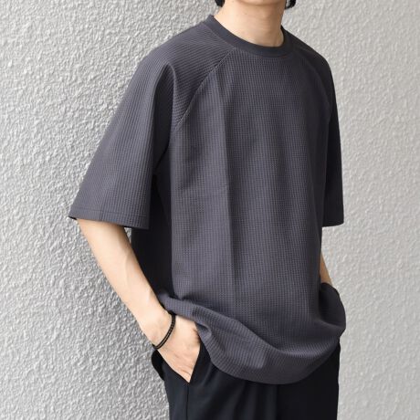 さらっとした着心地のワッフル素材を使用した、シンプルなTシャツ