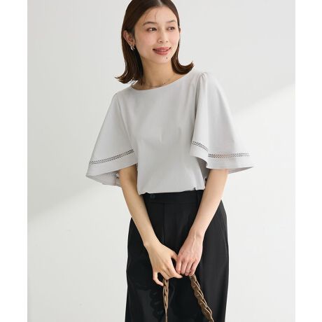 ふんわりと広がるフレアスリーブが、動くたびに軽やかな印象を演出するカットソーです。シンプルな身頃とのバランスが絶妙で、さりげなく華やかさをプラスしてくれます。袖部分のデザインが腕まわりを美しく見せ、気になるラインも自然にカバーできるのが嬉しいポイントです。後ろの首元にはパール調のアクセントを施し、後ろ姿まで抜かりなく上品に仕上げています。きれいめにもカジュアルにも合わせやすく、オンオフ問わず幅広いシーンで活躍します。着るだけでコーディネートが洗練される一枚です。