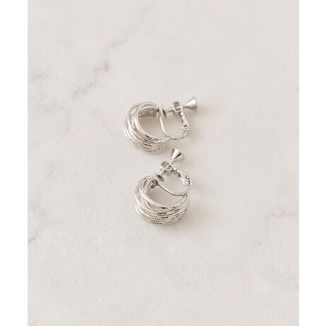 複数のフープが重なったようなデザインが、シンプルながらも印象的なアクセントになるイヤリングです。洗練されたフォルムが大人らしい雰囲気を演出し、コーディネートに上品なニュアンスをプラスします。主張しすぎないデザインなので、オンオフ問わずさまざまなシーンで使いやすいのが特徴です。軽くて着けやすく、長時間の着用でも快適に過ごせます。顔まわりを明るく見せてくれるため、シンプルなスタイリングにも華やかさを加えたいときにぴったりです。毎日の装いに取り入れやすい万能アクセサリーです。