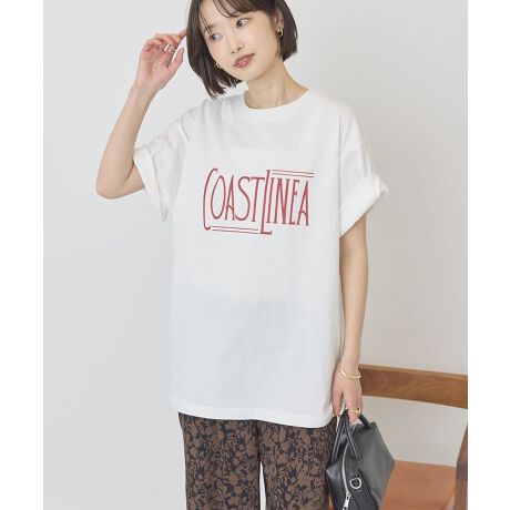 フロントとバックにロゴを配したTシャツ。ゆったりしたシルエットでカジュアルに着られ、オゾン加工によりプリントが馴染んでくたっとした生地感に仕上げました。オフホワイト×レッドは一枚で目を引く配色、オフホワイト×チャコールはジャケットのインナーにも合うベーシックな組み合わせ、ベージュとチャコールグレーのボディにはそれぞれ同系色ロゴで合わせやすいデザインに。※モデル着用画像は、光の当たり具合で色味が違って見える場合がございます。※お使いのモニター環境によって商品の色味が違って見える場合がございます。