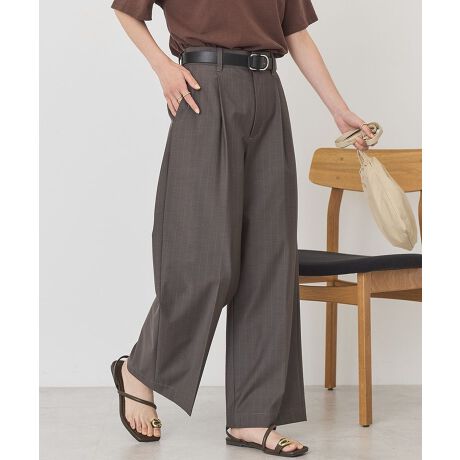 センタープレスで縦長効果のあるワイドスラックス。無地に加え、トレンドのチョークストライプを展開。フロントはワンタックのシンプルなデザインで着回ししやすく、イージーケアでシワになりにくいほかストレッチ性があり快適な穿き心地です。夏に嬉しい接触冷感機能付きで、100回洗っても色落ちしにくい仕様に。襟付きトップスと合わせたカジュアルな着こなしがおすすめです。