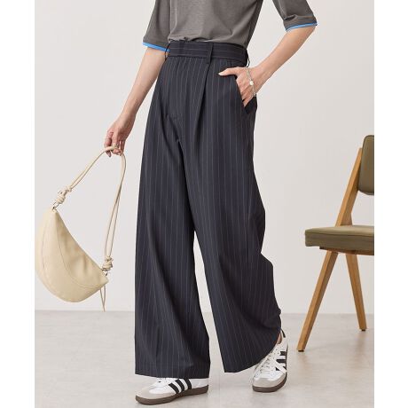 センタープレスで縦長効果のあるワイドスラックス。無地に加え、トレンドのチョークストライプを展開。フロントはワンタックのシンプルなデザインで着回ししやすく、イージーケアでシワになりにくいほかストレッチ性があり快適な穿き心地です。夏に嬉しい接触冷感機能付きで、100回洗っても色落ちしにくい仕様に。襟付きトップスと合わせたカジュアルな着こなしがおすすめです。