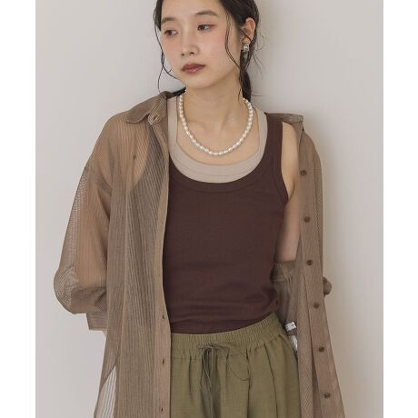 デザインの異なる2枚のタンクトップをレイヤードした、こなれ感のあるアイテム。肩のラインが重なることでデコルテがすっきり見え、1枚でもサマになる美しいシルエットが魅力です。柔らかな綿100%素材で2枚重ねても重たくならず、夏場もさらりと快適に着用いただけます。シャツやメッシュトップスのインナーに合わせるだけで、ワンランク上のスタイリングに。