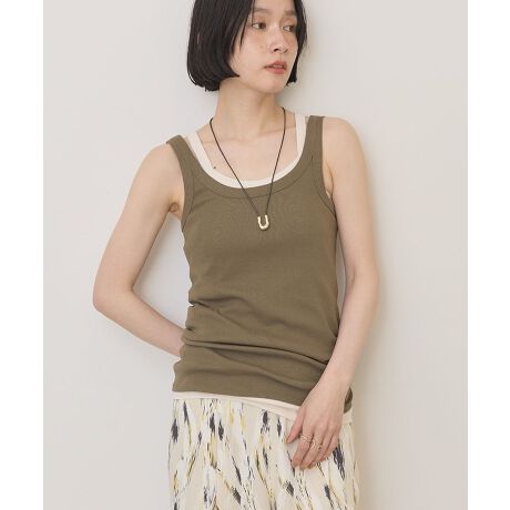 デザインの異なる2枚のタンクトップをレイヤードした、こなれ感のあるアイテム。肩のラインが重なることでデコルテがすっきり見え、1枚でもサマになる美しいシルエットが魅力です。柔らかな綿100%素材で2枚重ねても重たくならず、夏場もさらりと快適に着用いただけます。シャツやメッシュトップスのインナーに合わせるだけで、ワンランク上のスタイリングに。