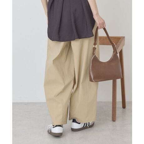 トレンドを感じさせる丸みのあるカーブシルエットのチノパンツ。ワイドすぎない適度なゆとりでこなれ感を出しつつスラックスのようなきちんと感も備えており、コンパクトなトップスはもちろんボリュームのあるトップスとも合わせやすい一着です。
