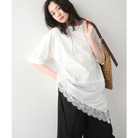 一枚で華やぐ、レースドッキングの旬スタイルレースとTシャツを組み合わせたデザインが、シンプルながらもトレンド感のある着こなしを叶えます。軽やかな素材感とやさしい雰囲気が魅力で、さりげなく女性らしさを引き立ててくれます。重ね着をしなくてもレイヤード風のスタイルが楽しめるため、コーディネートに悩む時間を減らせます。カジュアルにもきれいめにも合わせやすく、シーンを選ばず活躍する万能アイテムです。普段の装いに取り入れるだけで、いつものコーディネートに新鮮さと上品さをプラスしてくれます。