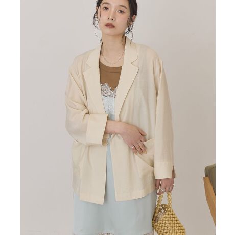涼しく羽織れる軽やかニュアンスジャケット接触冷感素材を使用した、暑い季節にも快適に着用できるオーバージャケットです。さらりとした肌触りで、長時間の着用でも心地よさが続きます。ゆったりとしたシルエットが抜け感を演出し、シンプルなコーディネートに羽織るだけで大人カジュアルな雰囲気に仕上がります。程よいシアー感が軽やかさをプラスし、季節感のあるスタイリングを楽しめるのも魅力です。大きめのポケットは実用性があり、日常使いにも便利です。