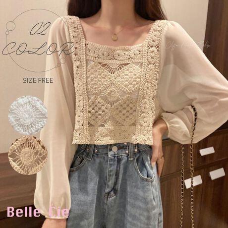 -繊細なレースデザインとシフォン袖が女性らしさを引き立てるブラウス。