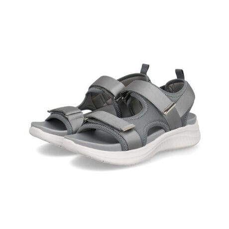 スポーティーなストラップデザインに、フェミニンな印象のサテン生地やメタリックパーツを取り入れた、きれいめスタイルにも合わせやすい1足です。