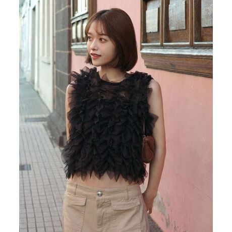 [ mayuさんコラボ ]チュールフリルノースリーブトップス [C7722]