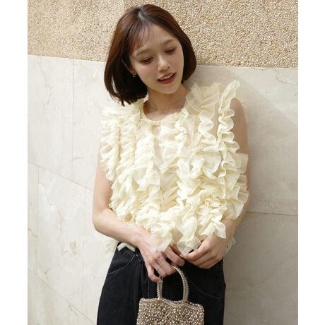 [ mayuさんコラボ ]チュールフリルノースリーブトップス [C7722]